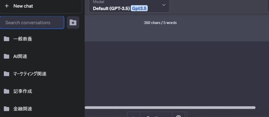 チャットボックスに任意のキーワードを入力することで、これまでのチャット履歴のなかから該当するものを抽出できます。また、フォルダの新規作成やフォルダ名の変更、これまでのチャットの各フォルダへの仕分けも可能です。