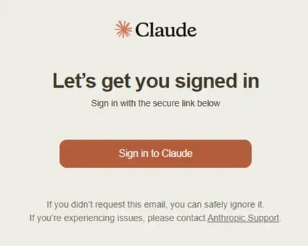 3. 登録したメールアドレスに下記の認証メールが届いたら、「Sign in to Claude」をクリックします。