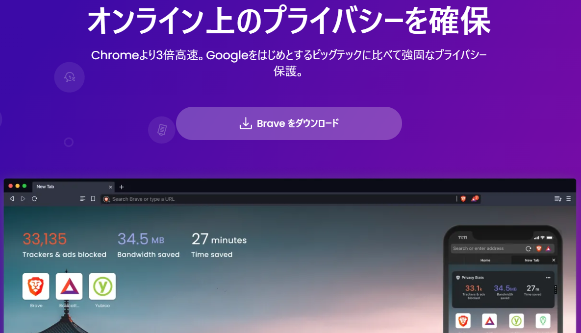 Braveは2019年にサービスを開始したブラウザです。圧倒的シェアを誇るブラウザGoogle Chromeと同等以上の性能を持ちながら、プライバシーやデータを守ることを目的として開発されています。