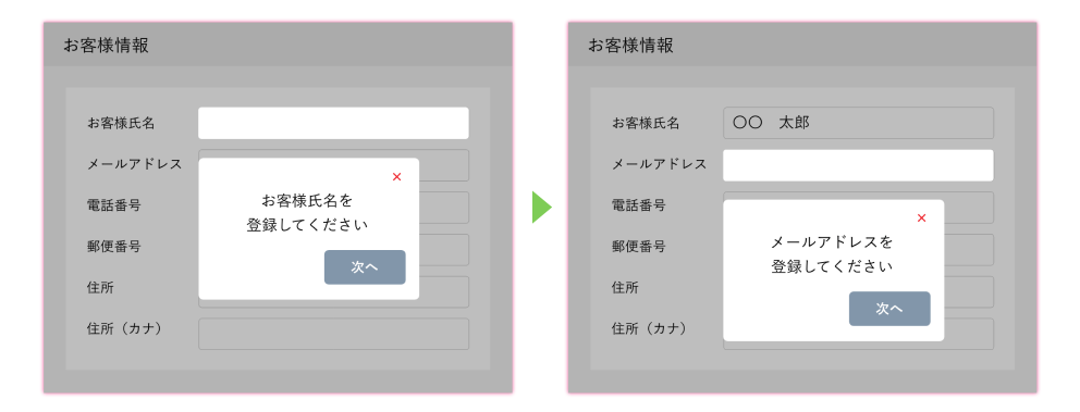 画面上にシステム操作を手助けする指示を表示させます。わかりづらい手入力作業や操作もリアルタイムにナビゲーションすることで、社内問い合わせや手戻りを防止します。