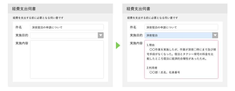 入力パターンを類型化して、プルダウン式で表示できます。選択肢の複雑な組み合わせにも対応したプルダウンリスト制御ができるので、組み合わせを逐一確認せずに済み、マニュアルの参照も大幅に削減できます。