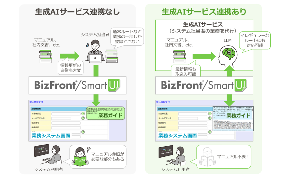 BizFront/SmartUIは、生成AIサービスとの連携をオプションで提供しています。