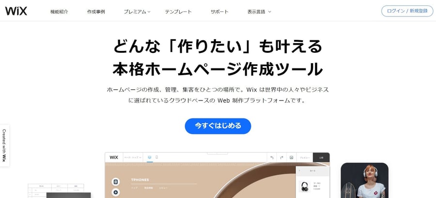 初心者からプロまで、利用者のレベルに合わせて作成できるサイト作成ツールの「Wix」。ランディングページを作れる600種類以上のテンプレートがあり、レイアウトの自由度が高いのが特徴です。