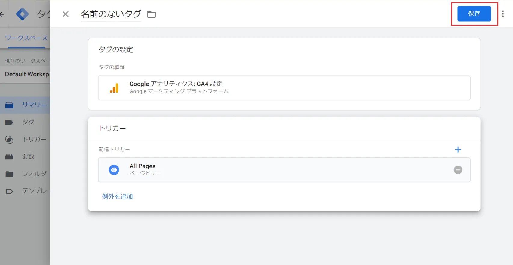 GTMのページに戻り、【トリガー】をクリックします。最後に【All Pages】を選択します。
