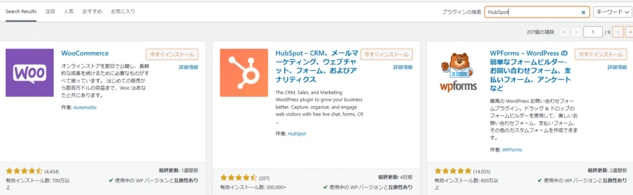 - 「HubSpot」を検索